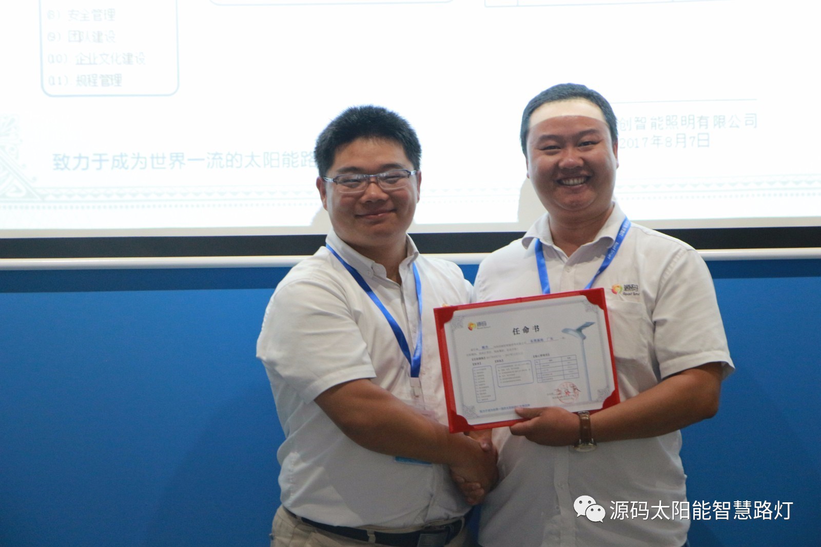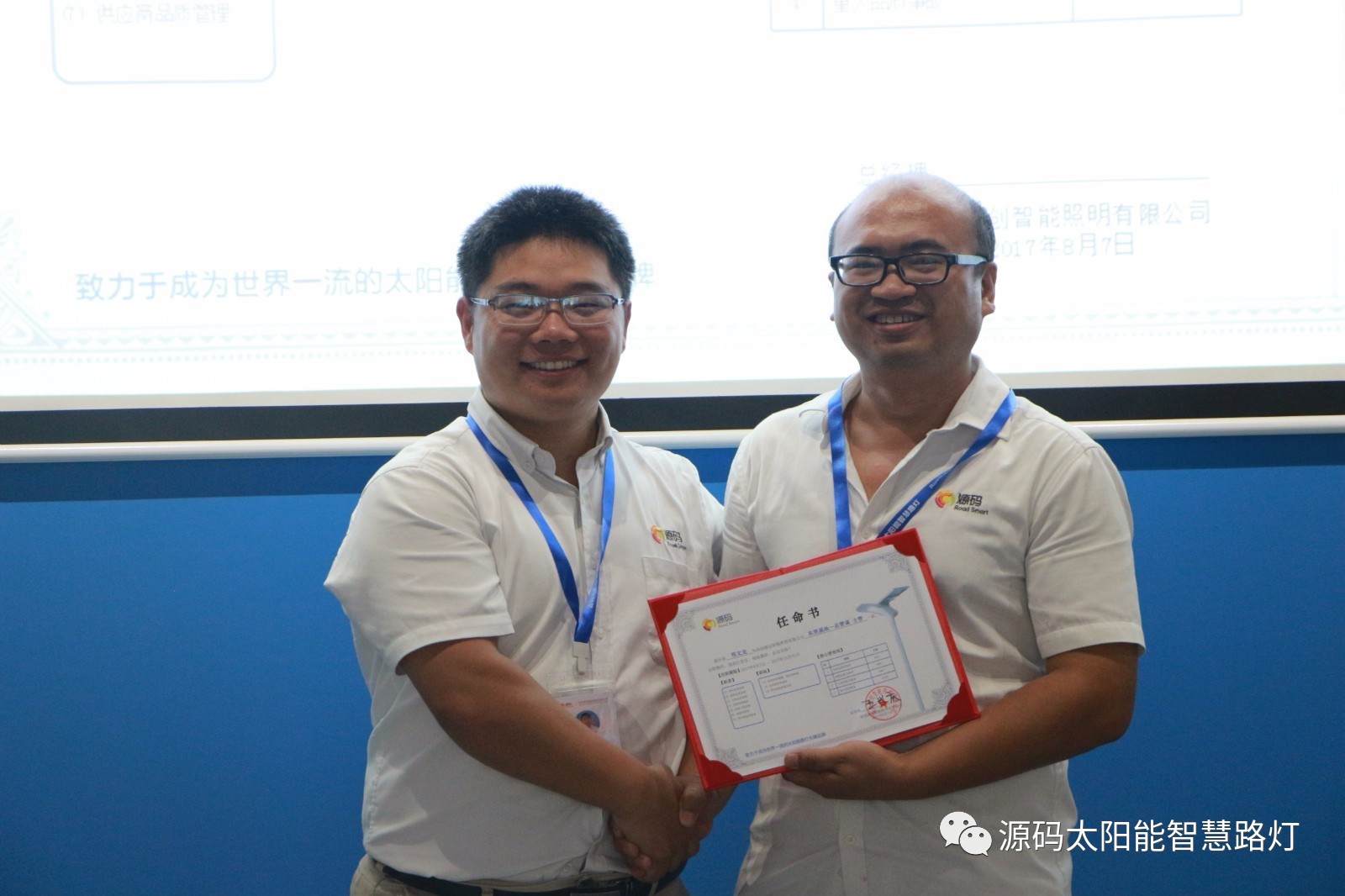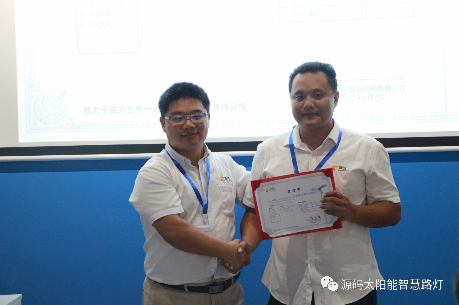 其次,由源碼人事主管劉柳女士宣讀任命書,源碼董事長(zhǎng)王興慶先生為被任命人頒發(fā)任命書,此次大會(huì)共計(jì)任命干部十一名,任期皆為2017年8月7日至2017年12月31日。