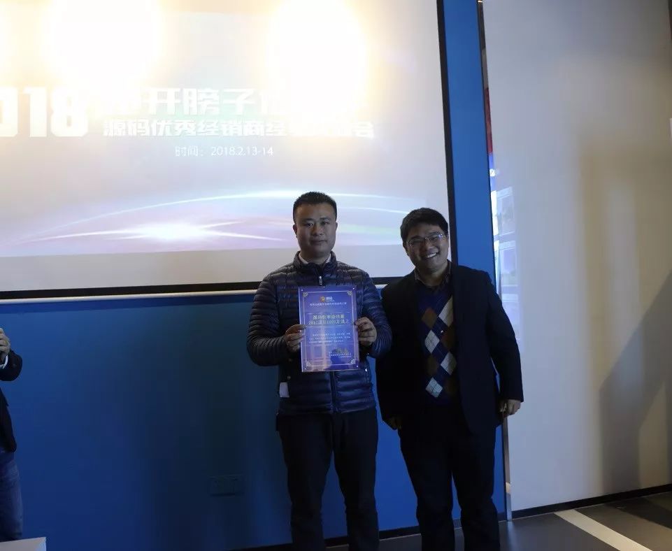 此次交流會(huì)上,共頒發(fā)了2名“源碼領(lǐng)軍經(jīng)銷商”,1名“源碼卓越經(jīng)銷商”,1名“源碼模范經(jīng)銷商”,2名“源碼精英經(jīng)銷商”。大家信心滿滿,相信能夠與源碼一道完成2018年的挑戰(zhàn)。相信接下來還會(huì)有更多的源碼優(yōu)秀經(jīng)銷商將收獲這一份榮譽(yù),去沖刺新的巔峰。