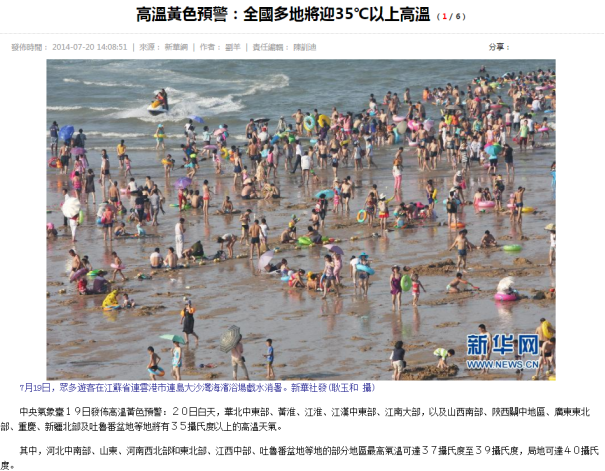 八月驕陽似火,進入三伏天,全國各地紛紛開啟了鐵板烤模式,多地氣溫高達35℃,南方地區(qū)出現(xiàn)大范圍持續(xù)高溫天氣。各地關于高溫的報道層出不窮,“避暑游每天10萬人入滇躲陰涼”,“全國多地將迎35℃高溫”,“非洲小哥在中國被曬到中暑”……中央氣象局提醒,盡量避免午后高溫時段的戶外活動。
