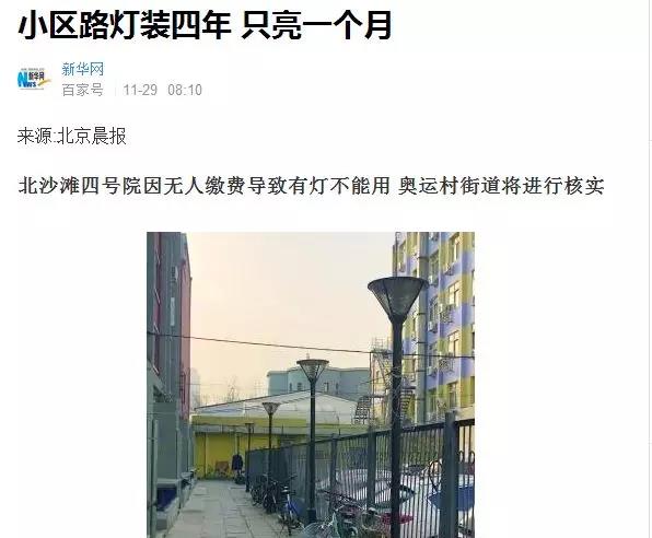 近日,北京晨報的一篇新聞引起了小編的注意,新聞內容如下:劉女士家住朝陽區(qū)北沙灘四號院,院子雖然不大,但每晚黑燈瞎火進出并不方便,“小區(qū)也不是沒有路燈,但安裝好幾年,除了最開始的一個月,路燈再也沒亮過。晚上這里可黑呢,老人小孩兒要是腿腳不利落,根本不敢出門?!碧旌诔鲩T難,一直是困擾小區(qū)居民的難題。