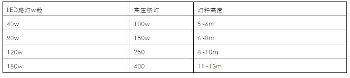 二.太陽能路燈常用w數(shù)及燈桿高度對比表:
