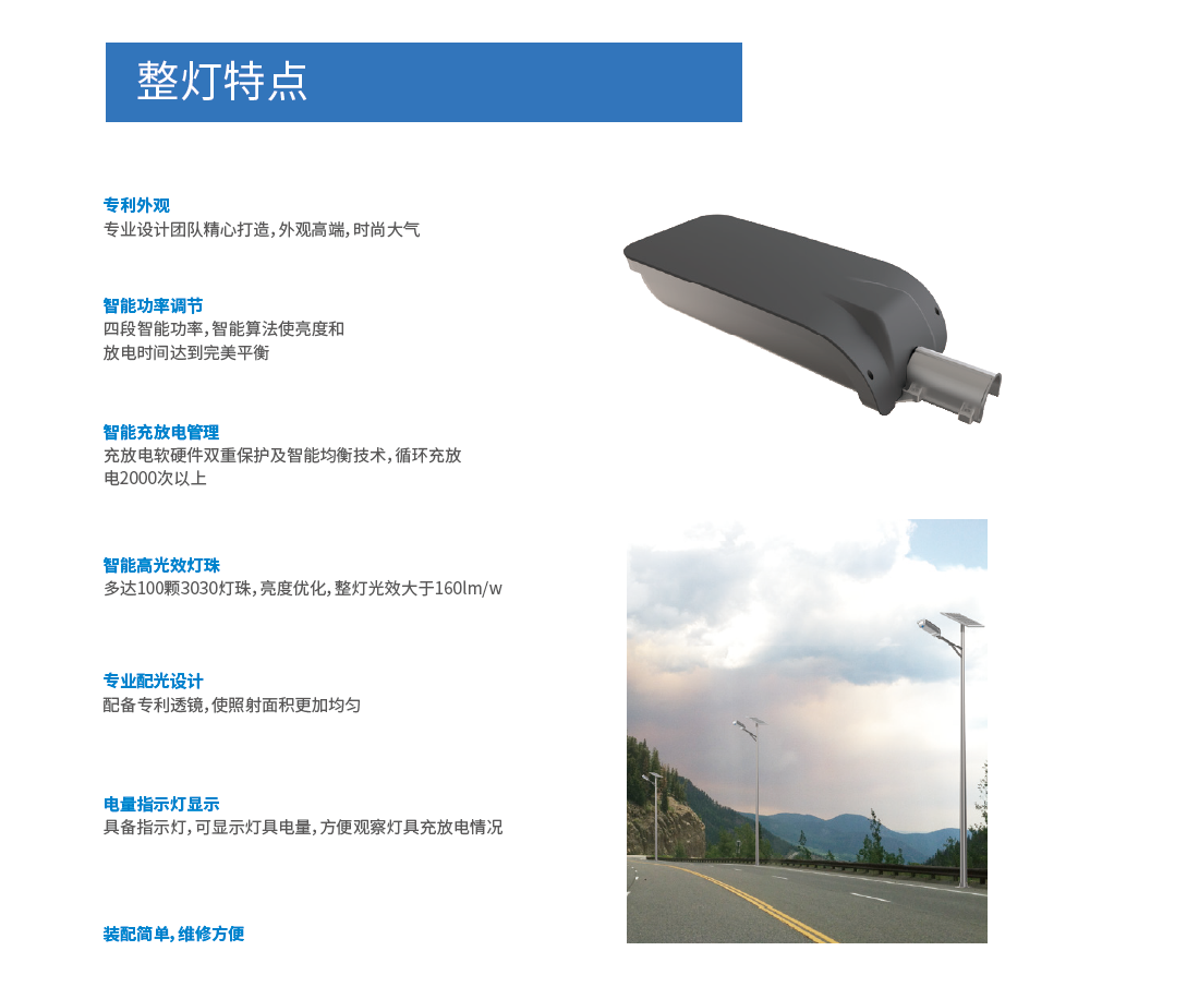 云鵬燈作為中大功率分體式太陽能路燈,被廣泛應(yīng)用于新農(nóng)村道路、鄉(xiāng)鎮(zhèn)道路、城郊車道等6-10米的安裝場景。